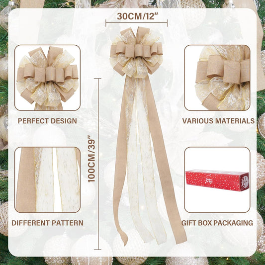 Christmas Tree Topper,Christmas Ornament with Glitter Satin Mesh Streamer,For Your Christmas Deco...