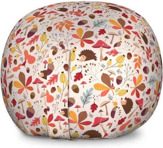 Autumn Storage Toy Bag Chair, Forest Foliage with Woods Wildlife Cartoon Style Mushroom Pinecone ...