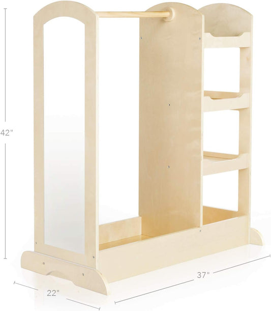 See and Store Dress-Up Center – Natural: Armoire for Kids with Mirror & Shelves, Clothes Rack...