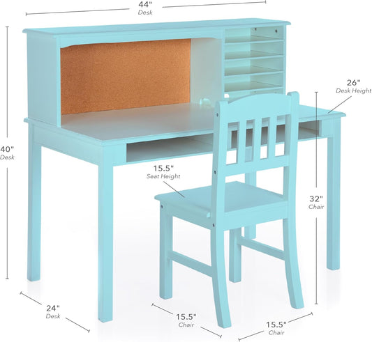 Kids Media Desk, Hutch and Chair Set - Teal: Kids Table and Chairs Set, Student'S Study Desk ...