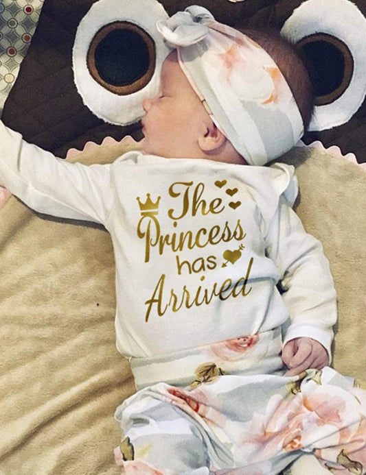 Newborn Baby Girl Clothes Hi I'M New Here Newborn Outfit Infant Romper Floral Pants Cute Baby...