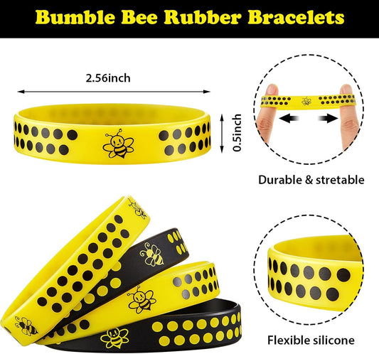 60 Pieces Bee Rubber Bracelets Bulk Bee Theme Party Favors Silicone Wristbands Black and Yellow C...