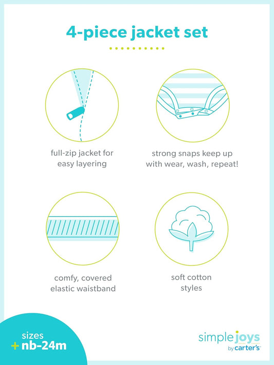 Baby Girls' 4-Piece Jacket, Pant, and Bodysuit Set