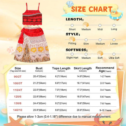 Princess Moana Costume for Girls Adventure Outfit Two-Pieces Crop Top Skirt Set Birthday Party Cl...