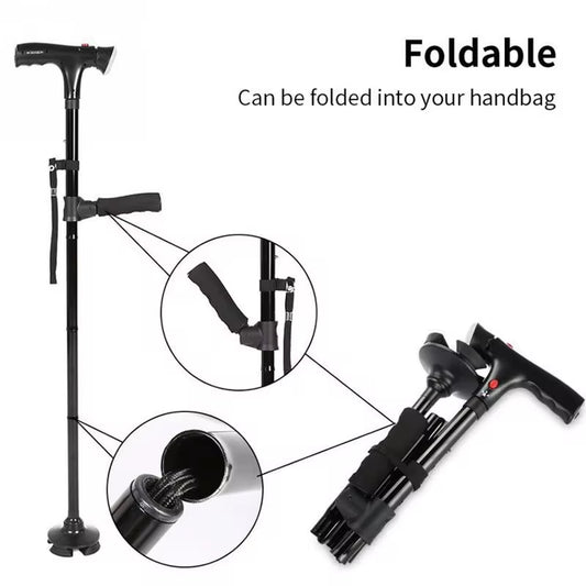 Collapsible Telescopic Folding Cane Elder Cane LED with Alarm Walking Trusty Sticks Elder Crutche...