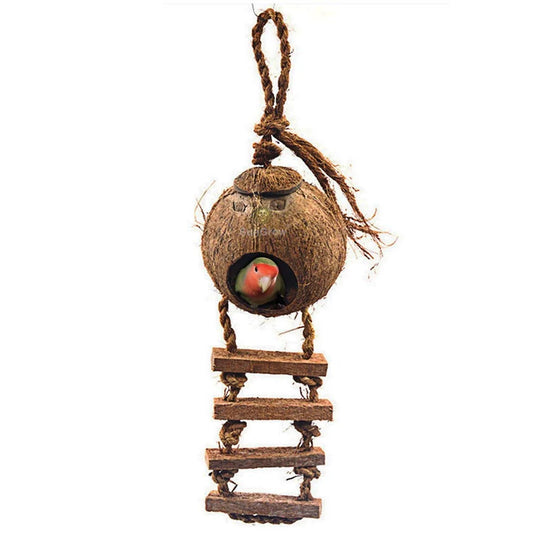 Natural Coconut Shell Nest & Hanging Bird House with Ladder