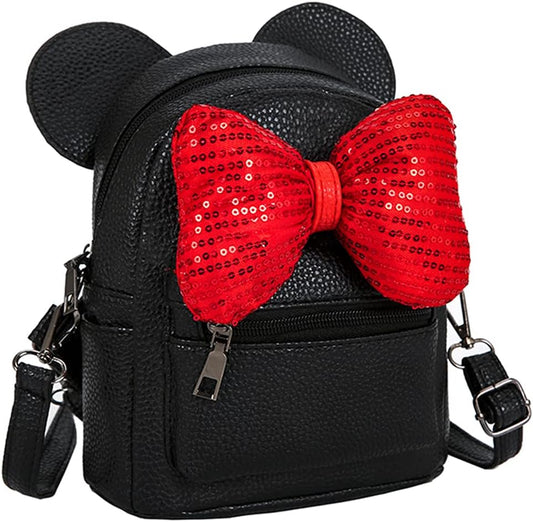 Girls Mini Backpack Purse Mouse Ear Polka-Dot Sequin Bow Convertible Backpack to Crossbody Bag fo...