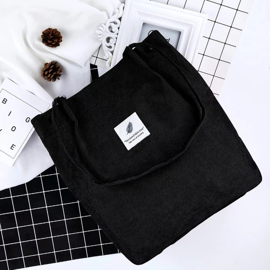 Corduroy Tote Bag Large for Women Girl Lady Canvas Shoulder Cord Purse and Handbags with Inner Po...