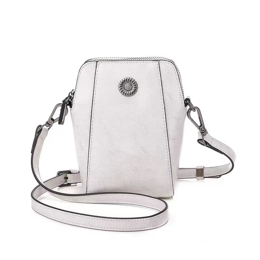Leather Women'S Mobile Phone Bag Single Shoulder Messenger Purse Fashion All-Match Oil Wax Co...