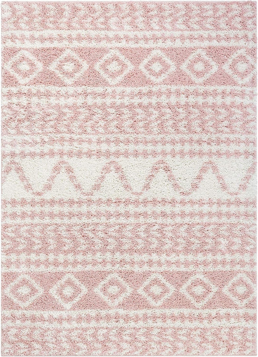 Madison Shag Cossima Tribal Diamond Stripes Shag Blush Pink 2'3" X 7'3" Runner Rug