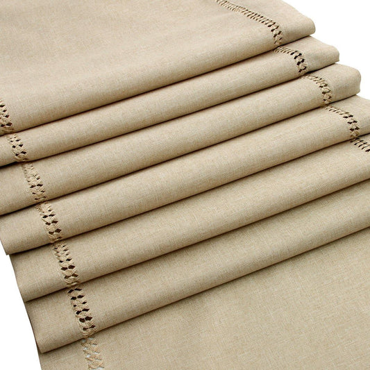 Handmade Hemstitched Polyester Rectangle Table Runners,Beige 14X48 Inch