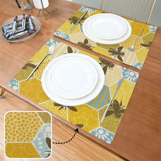 Honeycomb Bee Placemats Set of 6 Sunflowers Honey Bees Table Mats Burlap Placemat Washable Non-Sl...