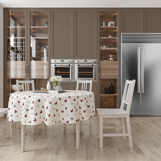 Farmhouse Chicken Fabric Tablecloth 100% Cotton, 52 X 70 Rectangular