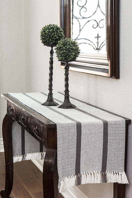 Table Runner Cotton Farmhouse Boho 14X72 In, Table Décor for Kitchen or Dining, Gray Cloth Woven ...