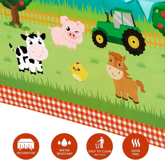 Farm Animal Party Tablecloth - 1 PC 54" X 108" Farm Birthday Party Decorations Disposab...