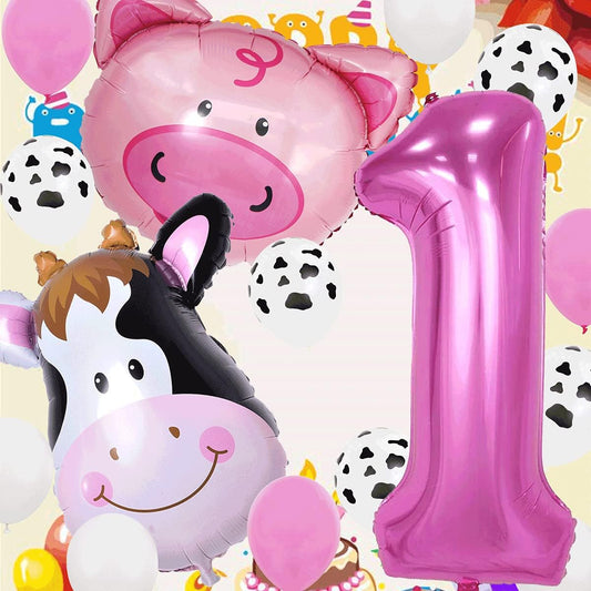 18Pcs Farm Animal Balloons for 1St Birthday Party Decorations Pig Cow Head First Farm Animal Them...