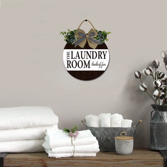 12" Wash Dry Fold Repeat Laundry Room Sign Rustic Wooden round Plaque Wreaths for Wall Door ...