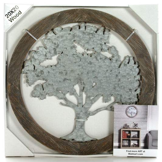 Rustic 20" round Wood and Metal Tree Decorative Wall Art
