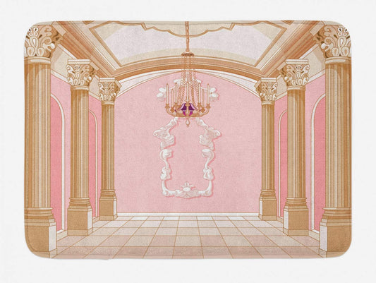 Cartoon Bath Mat, Interior of the Ballroom Magic Castle Chandelier Ceiling Columns Kingdom Print,...