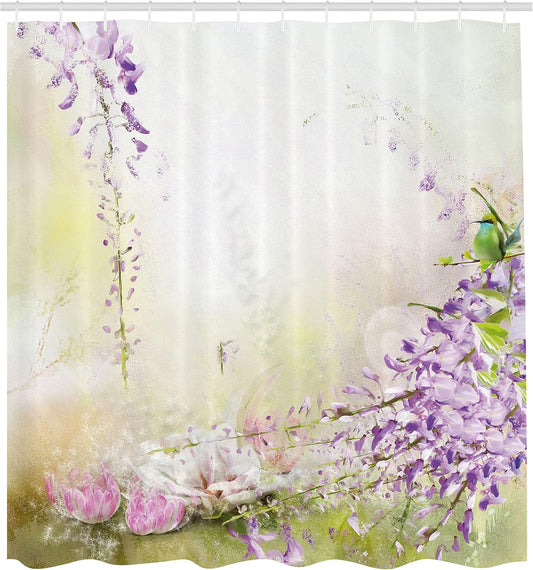 Lavender Shower Curtain, Painting Style Floral Composition Spring Inspired Garden Plants, Cloth F...