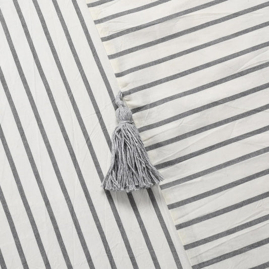Gray and Beige Stripe Patchwork Cotton Fabric Tassel Shower Curtain for Bathroom,Farmhouse,Countr...