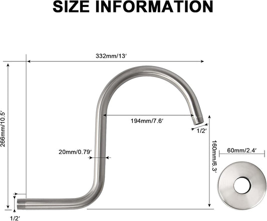 High Rise S Shape Shower Extension Arm, Shower Head Extender Shower Arm with Flange, Standard 1/2...