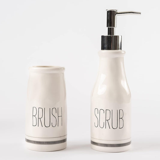Bistro Scrub Soap Dispenser and Toothbrush Holder Set, White