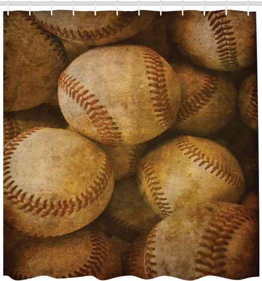 Vintage Shower Curtain, Vintage Baseball Background American Sports Theme Nostalgic Leather Retro...