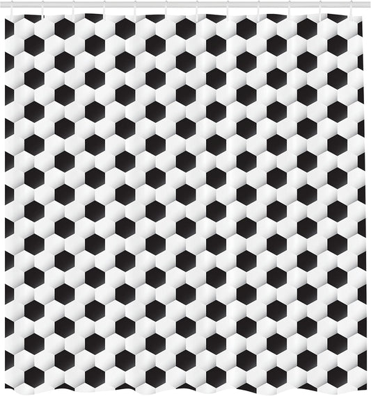 Sports Shower Curtain, Soccer Ball Vivid Pattern Athletic Sport Themed Geometrical Modern Design,...