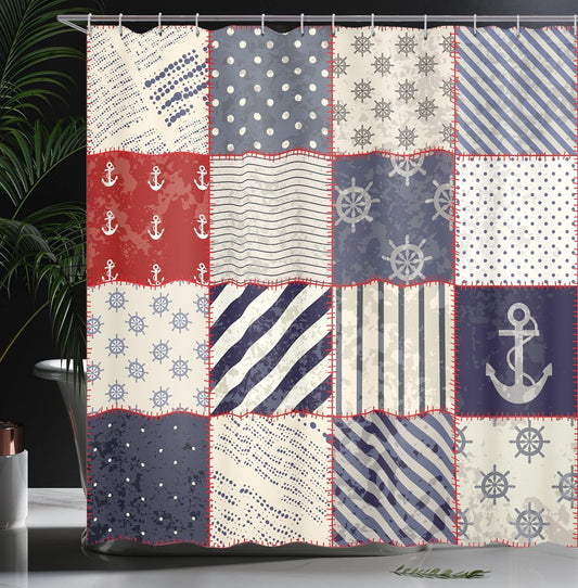 Nautical Shower Curtain, Maritime and Nautical Life Design with Vintage Sailor Knot Anchor Motifs...