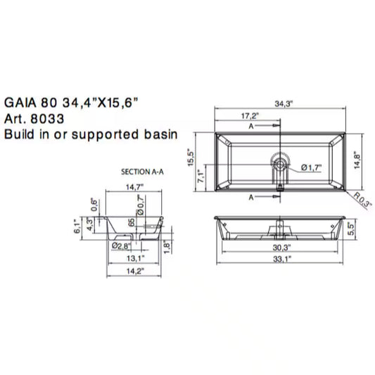Gaia Drop-In Bathroom Sink in White