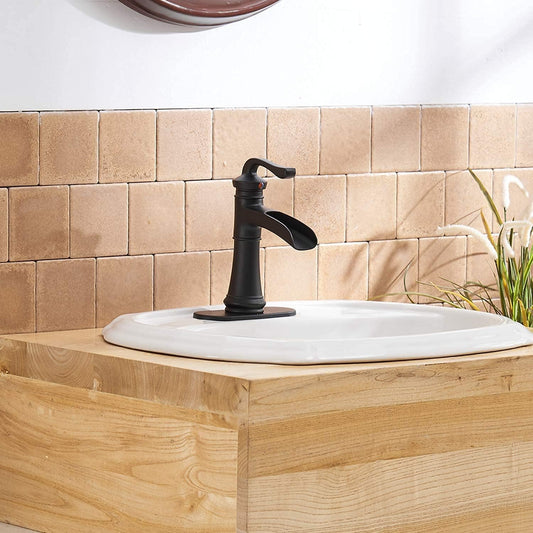 Matte Black Bathroom Faucet Waterfall Sink Faucets & Parts with Drain Stopper, Solid Brass Co...