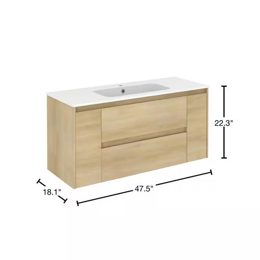 Ambra 47.5 In. W X 18.1 In. D X 22.3 In. H Bathroom Vanity Unit in Nordic Oak with Vanity Top and...