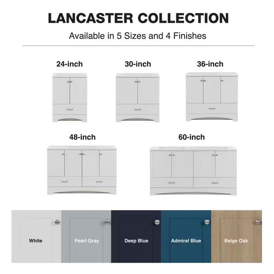 Lancaster 61 In. Double Sink White Bath Vanity with White Cultured Marble Top (Assembled)