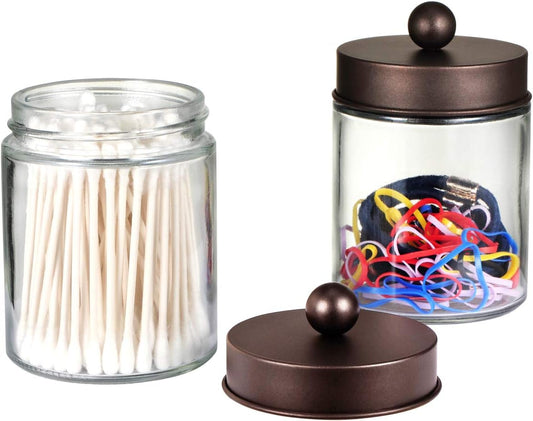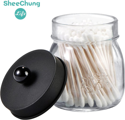 6 Pack Qtip Holders with Labels, Bathroom Organizers and Storage, Bathroom Decor, Apothecary Jars...