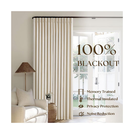 Pleated Linen Blackout 120 Inch Curtains for Living Room Dining 2 Panels Set ...