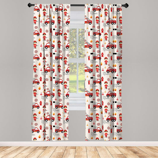 Truck Window Curtains, Little Boys and Girls in Uniforms Fighters Theme Career Profession Pattern...