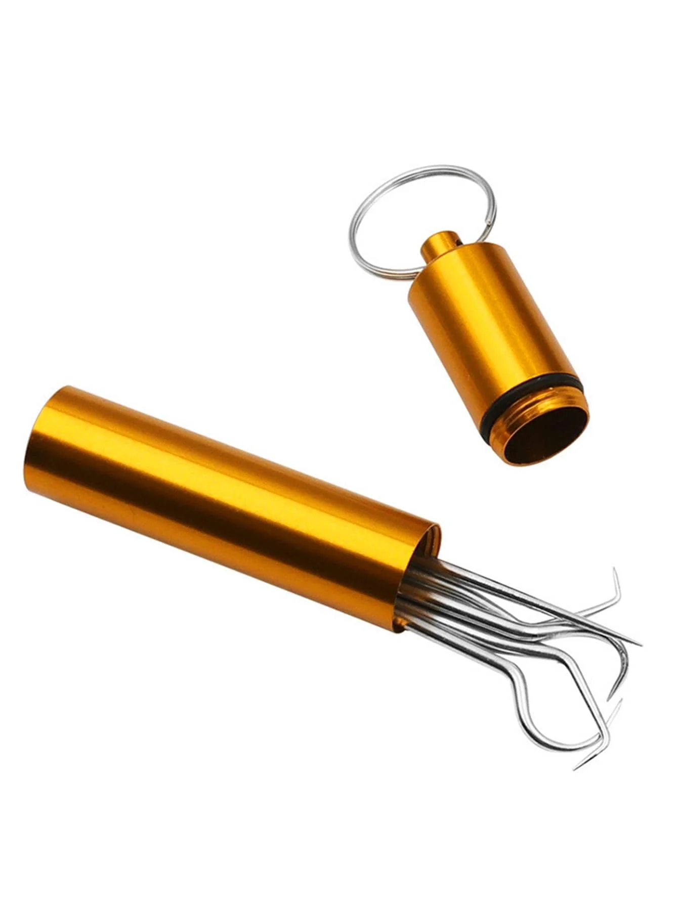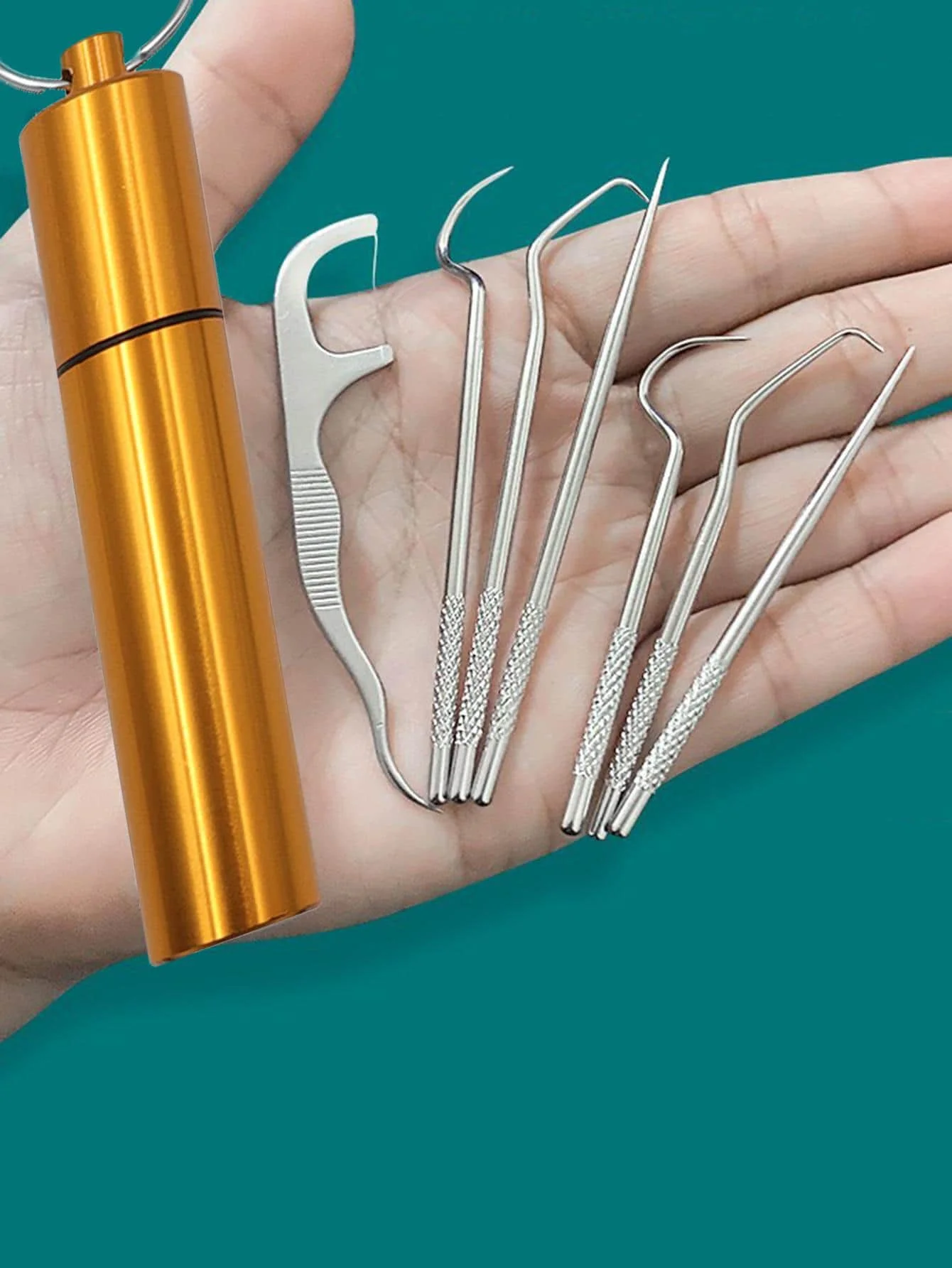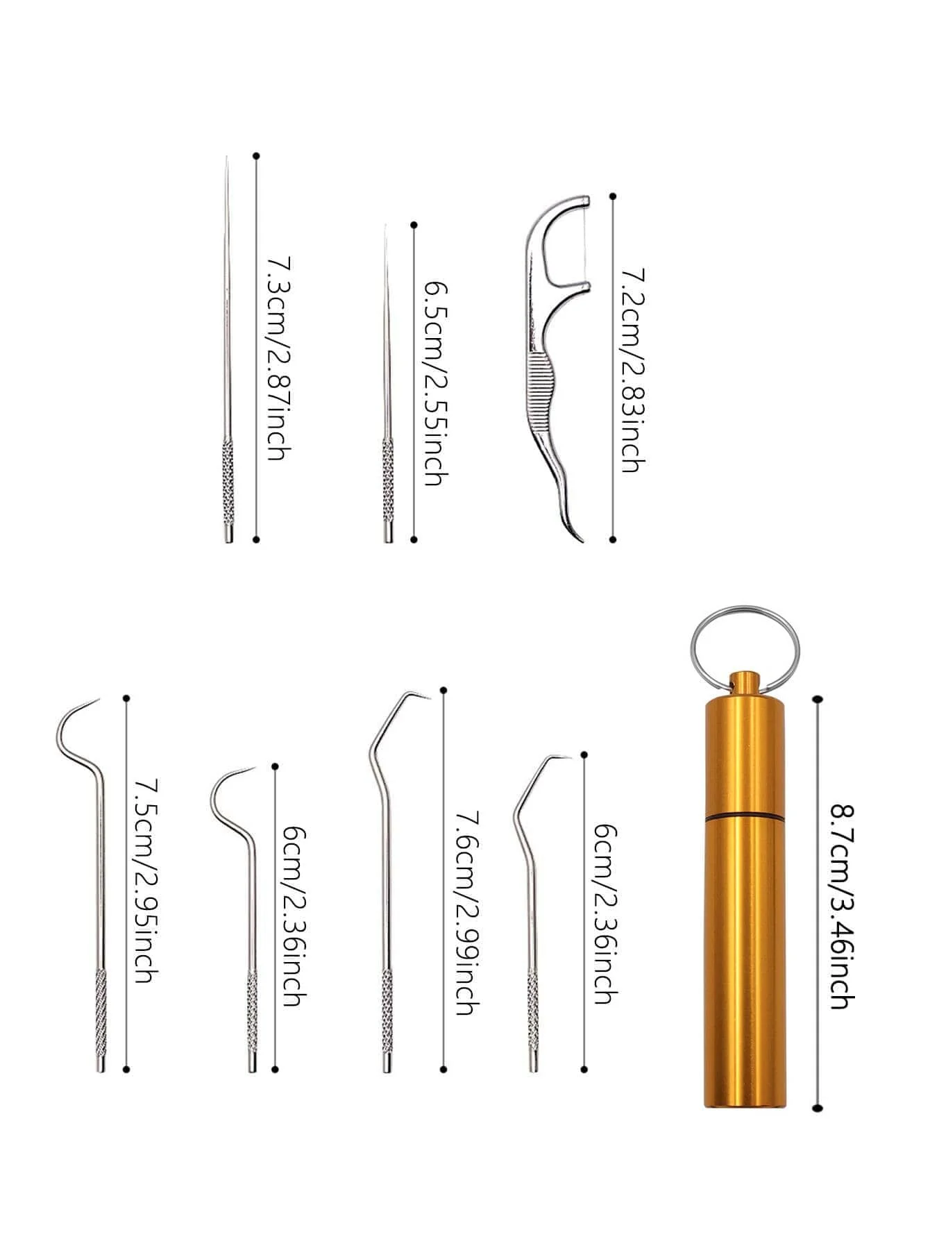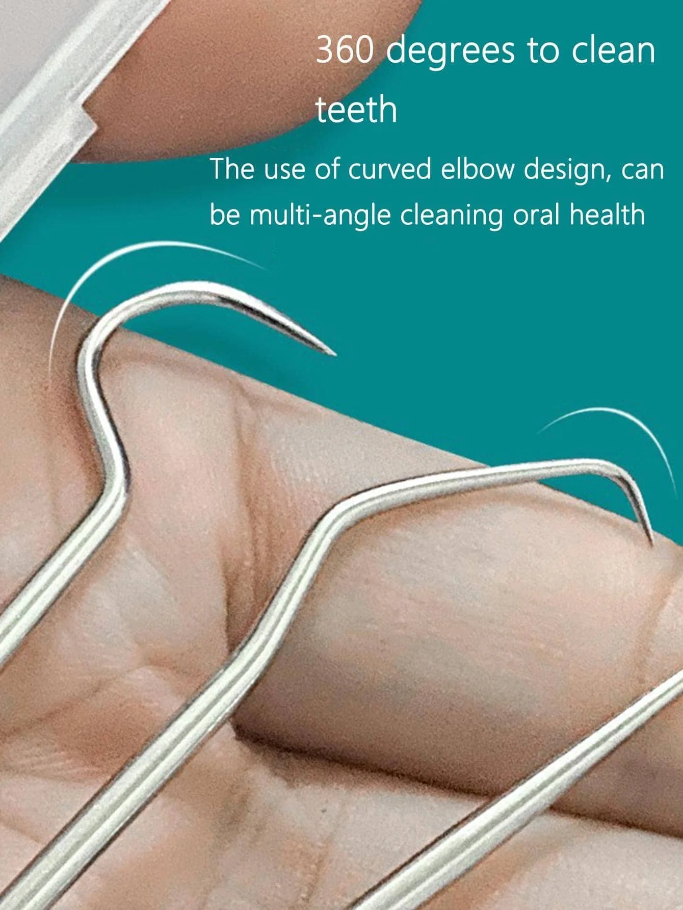 1set-Stainless Steel Toothpick Set Tooth Flossing Reusable Toothpicks Portable Toothpick Floss Teeth Cleaner Oral Cleaning