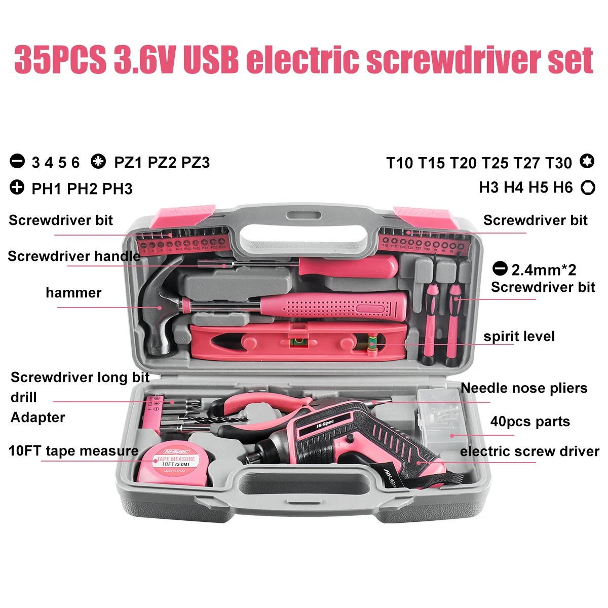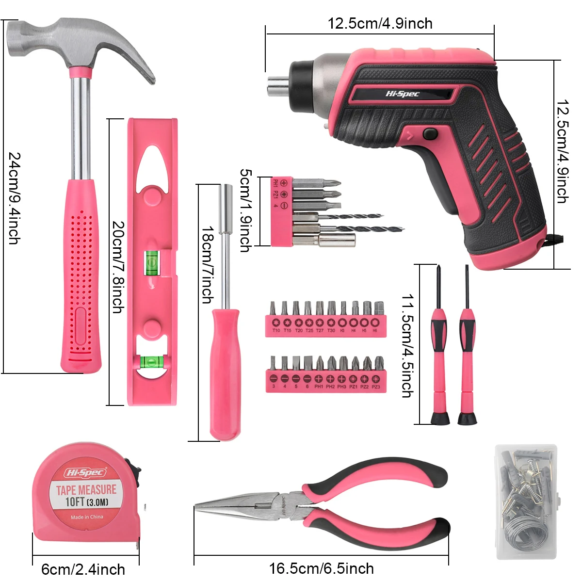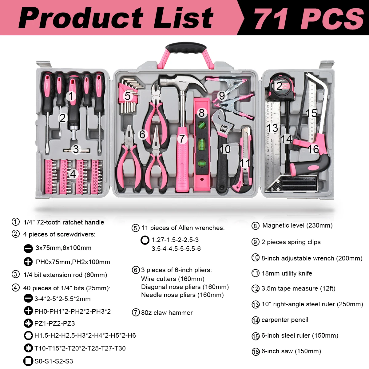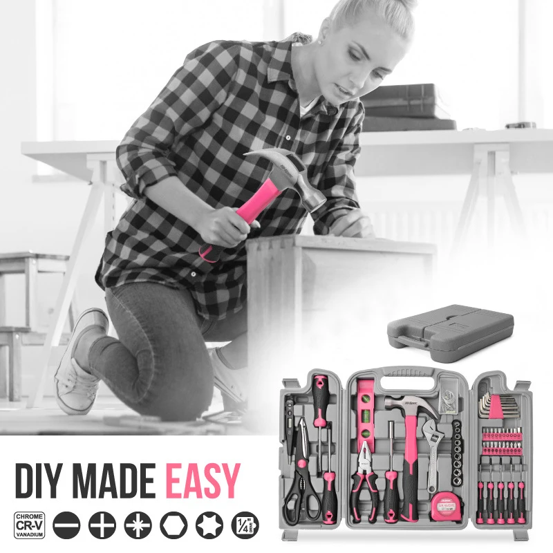 67/71/56/35Pcs Automotive Maintenance Tools -Household Repair Tool Kit Multi-Purpose Pink Hand Tool Set with Storage Box