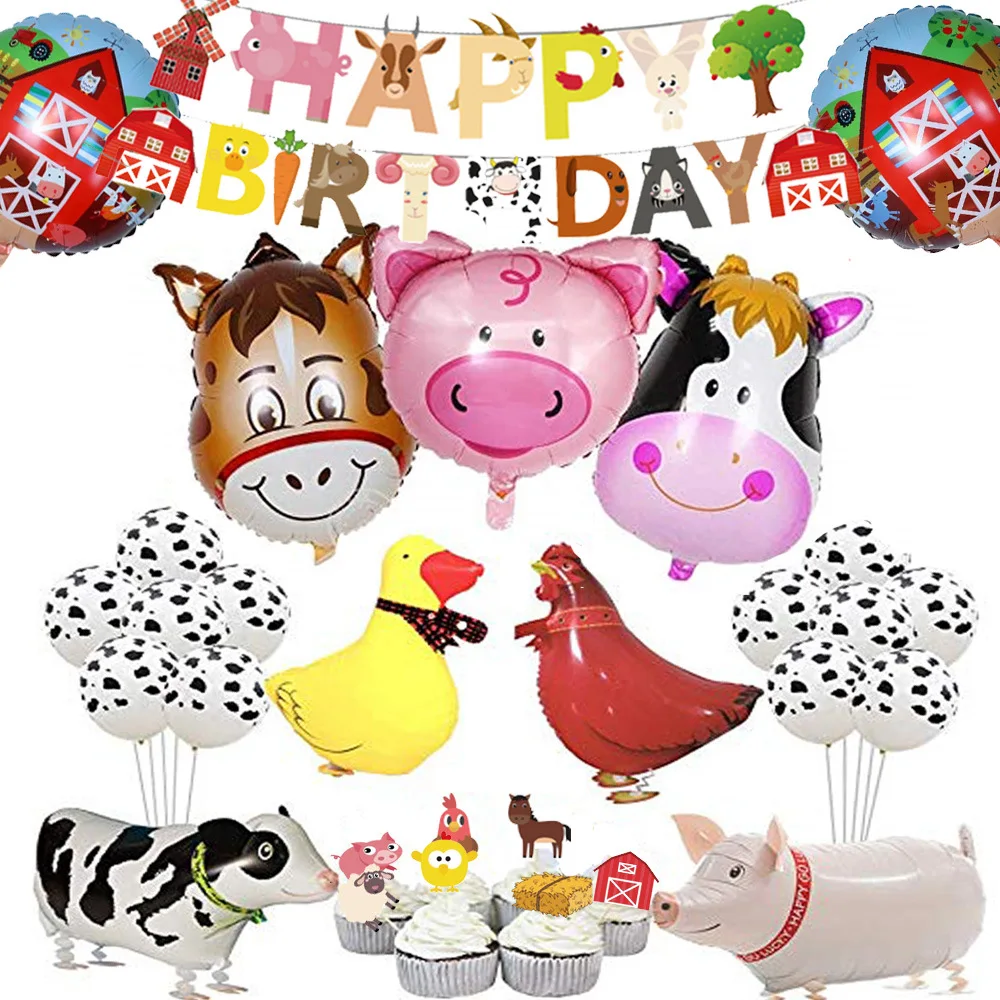 Baby Shower Farm Animals Theme Party Favors Decorations with Balloon Cartoon Disposable Tableware Sets Birthday Party Supplies