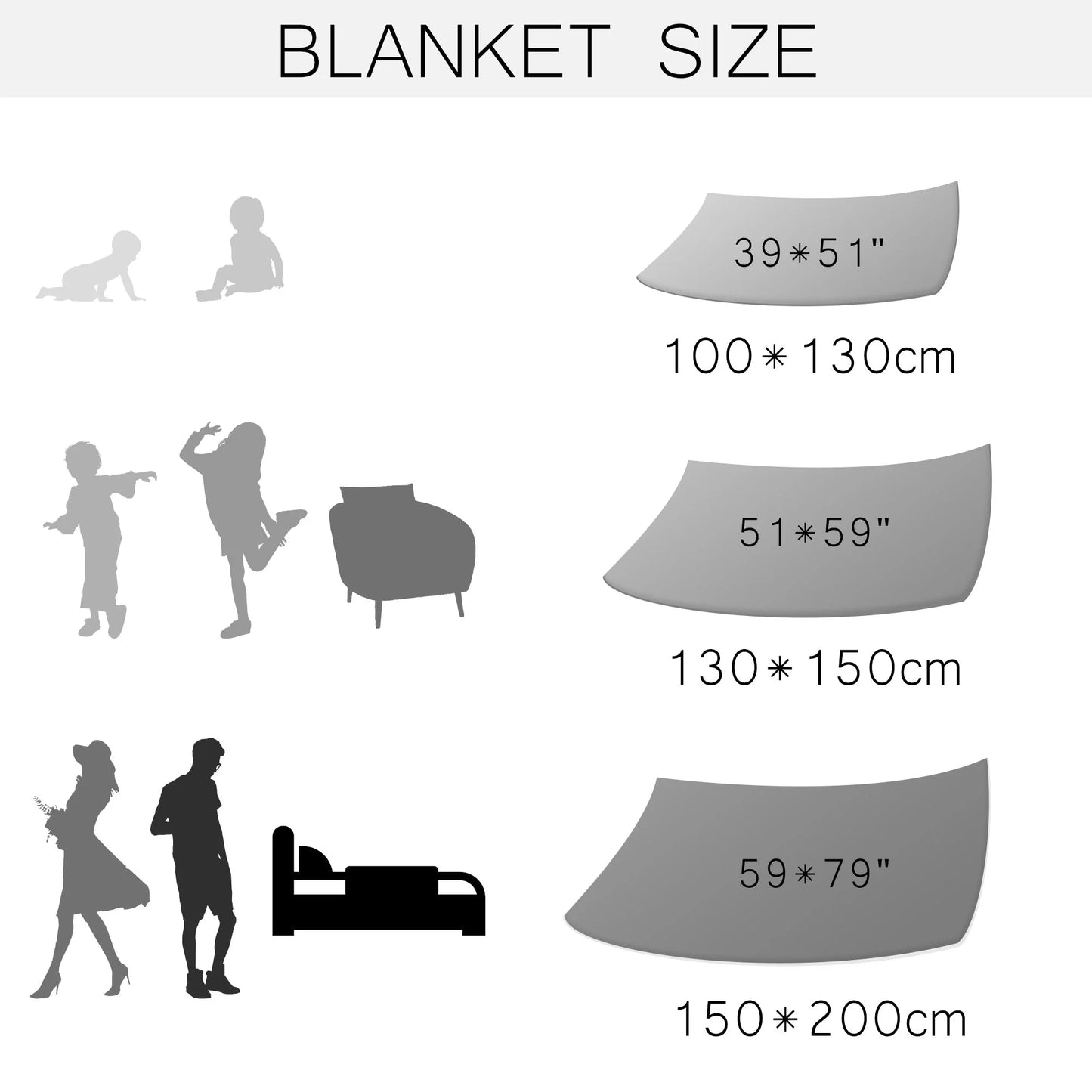 Available in 3 sizes: Pet: 100*130cm/39" x 51"; Throw: 130*150cm/51" x 59" ; Twin: 150*200cm/59" x 79"