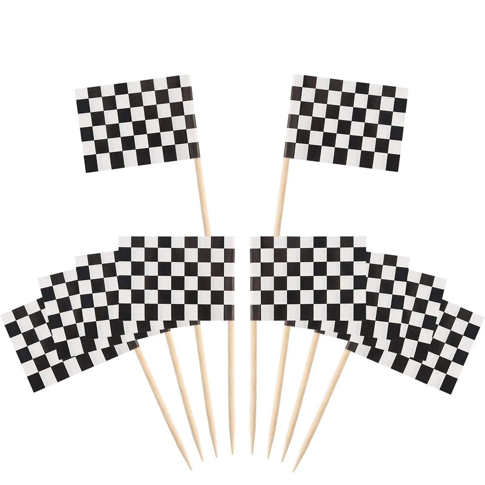 24Pcs Checkered Racing Flag Toothpicks Cupcake Picks Toothpick Flag Dinner Flags Race Car Cake Toppers Decorations Party Supplie