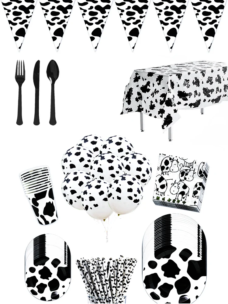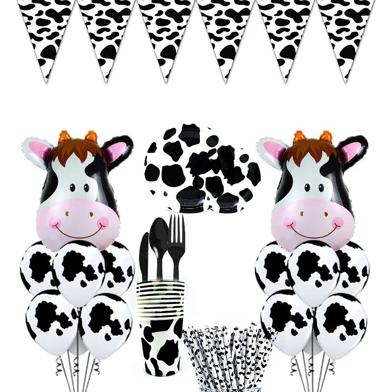 Farm Cow Theme Birthday Party Animal Party Cow Decoration Disposable Cup Plate Tablecloth Baby Shower Balloon Decoration
