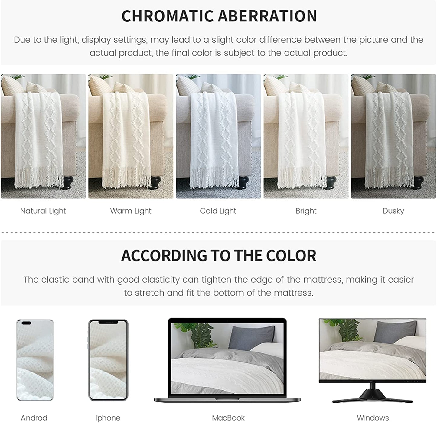 - ULTRA-SOFT PLUSH CHENILLE: The throw pattern and tassels is made from soft mild chenille. It's very soft, wrinkle resistant, colorfast, and it fits perfectly.