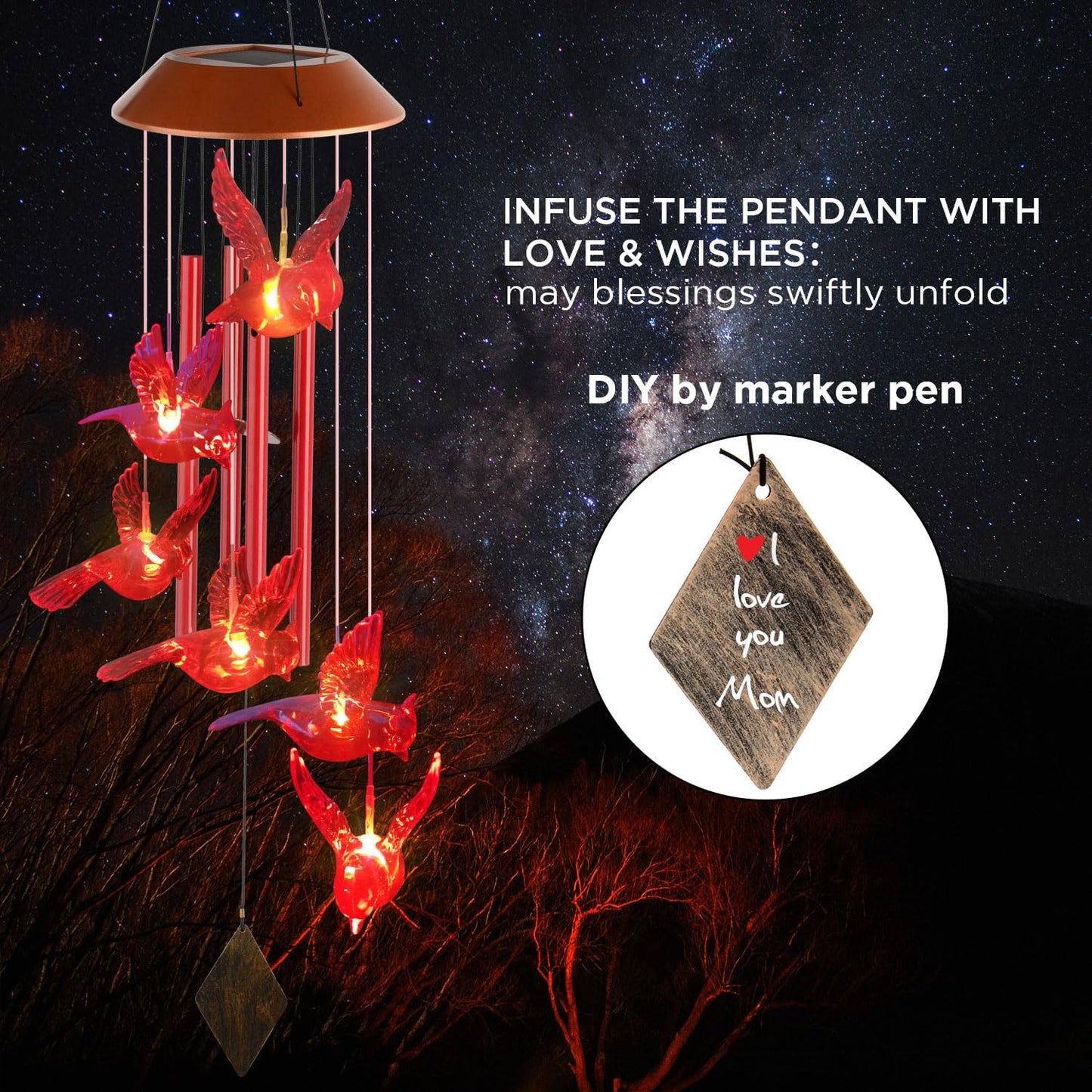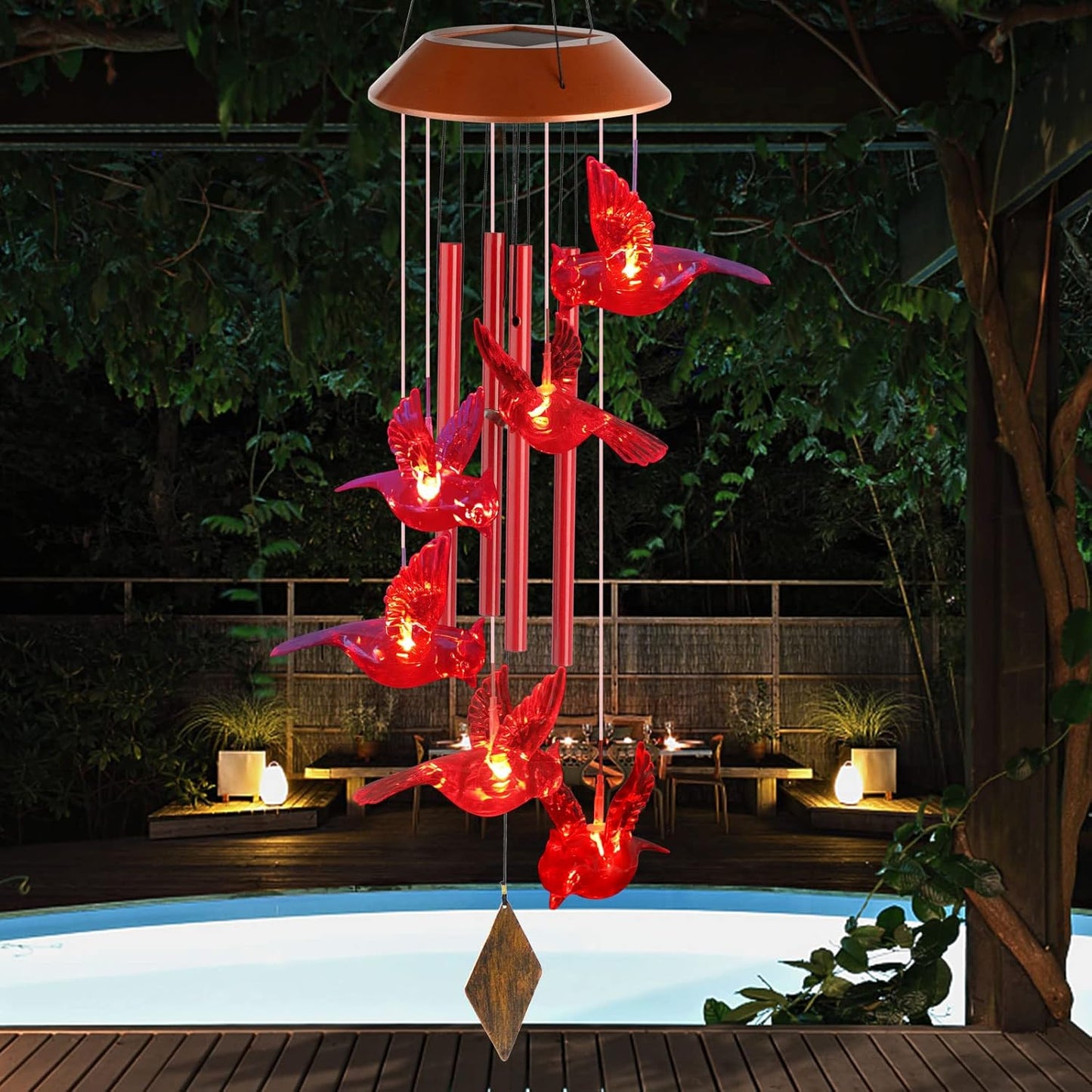 - Cardinal Wind Chimes, Ultimate Gift Choice: The enchanting wind chimes make the perfect gift for everyone! From moms to friends, neighbors, and colleagues, they're ideal for any occasion—Mother's Day, Thanksgiving, Christmas, birthdays, housewarmings, and more.As dusk falls, 6 cardinals emit a beautiful lighting effect. More captivating than twinkling stars, these wind chimes are a treasure you'll cherish for years to come. Perfect gifts for mom, grandma, and garden lovers alike!