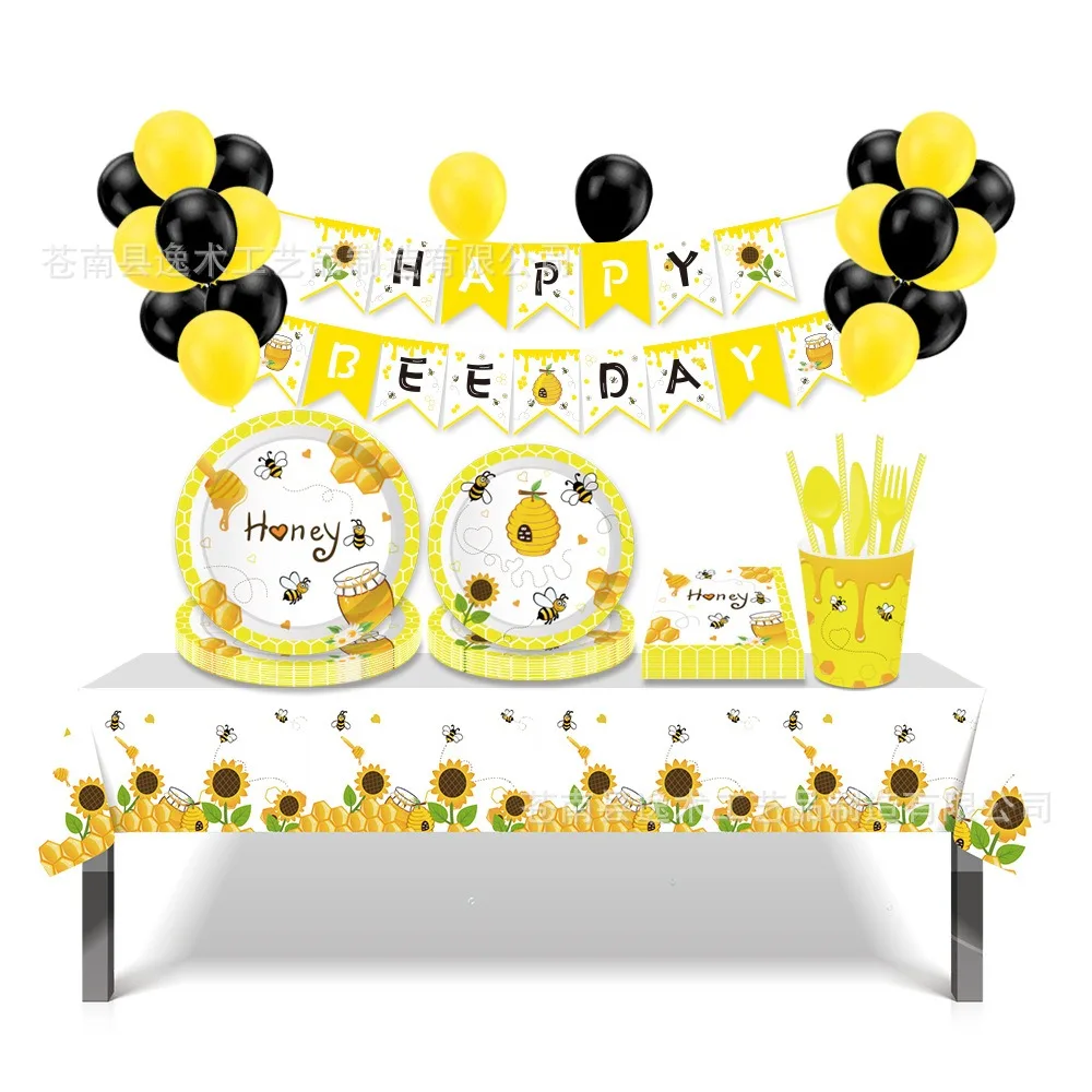Honey Bee Sunflower Theme Disposable Tableware Yellow Bee Honey Plates Napkins Cups Kids Happy Bee Birthday Party Supplies