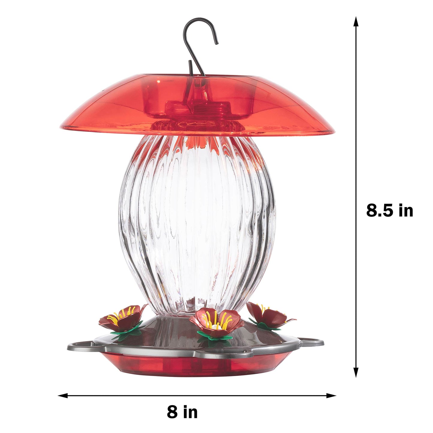 The built-in ant moat deters crawling ants from reaching the feeder nectar when filled with water, while the sunshade shields feeding hummingbirds from both sun and rain. The four bee-resistant white and yellow flower feeding ports offer a large 20 oz nectar capacity with a beautifully designed feeder bottle. The feeder easily disassembles for a thorough cleaning, and the wide-mouth bottle makes filling easy. Ready-to-use and hang right out of the box with the included S-hook. For best results, use More Birds Premium Nectar, which simulates natural nectar found in flowers.