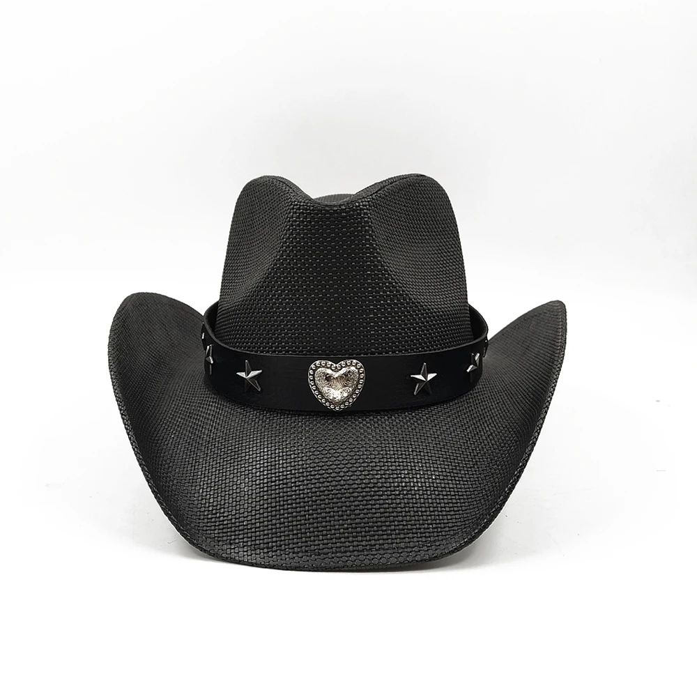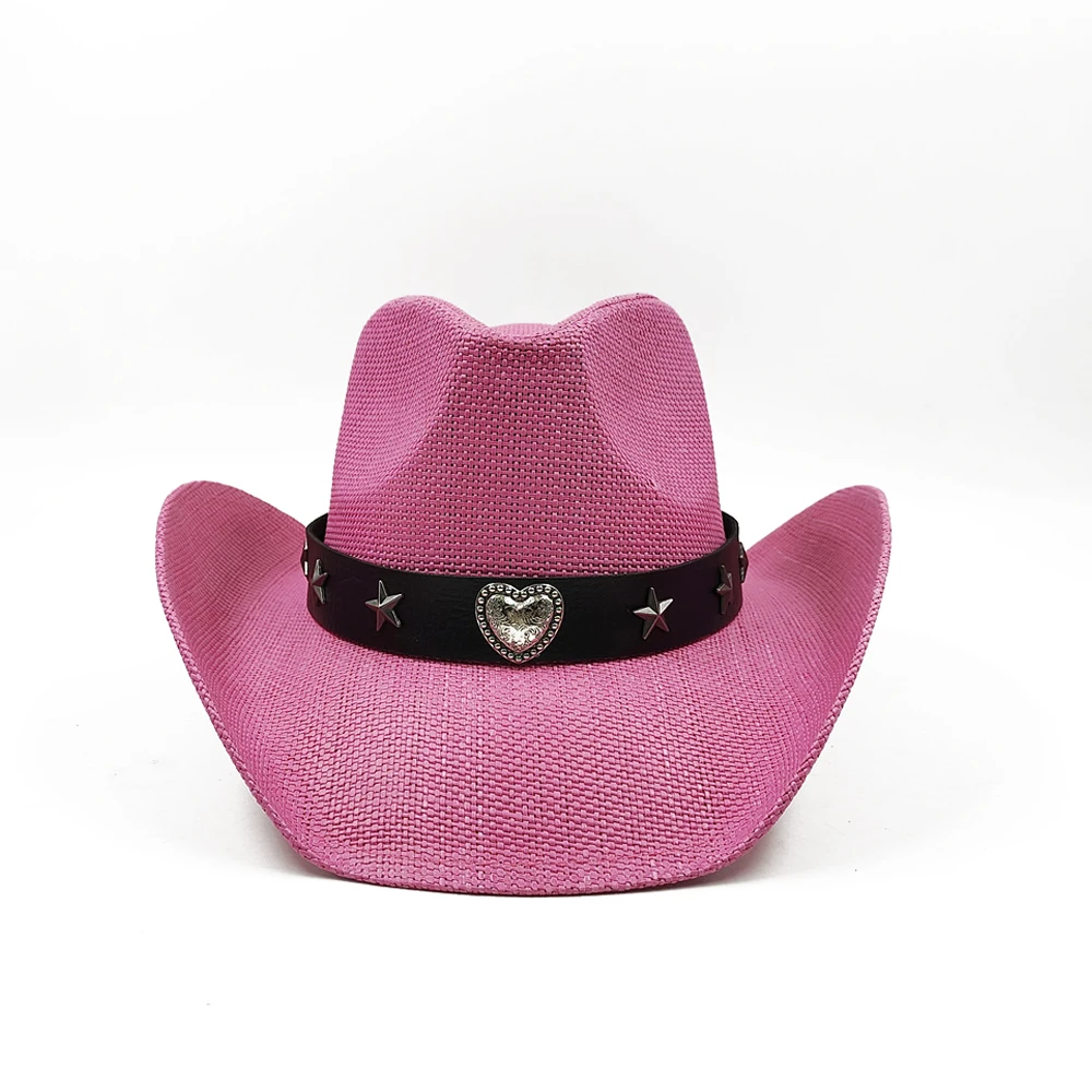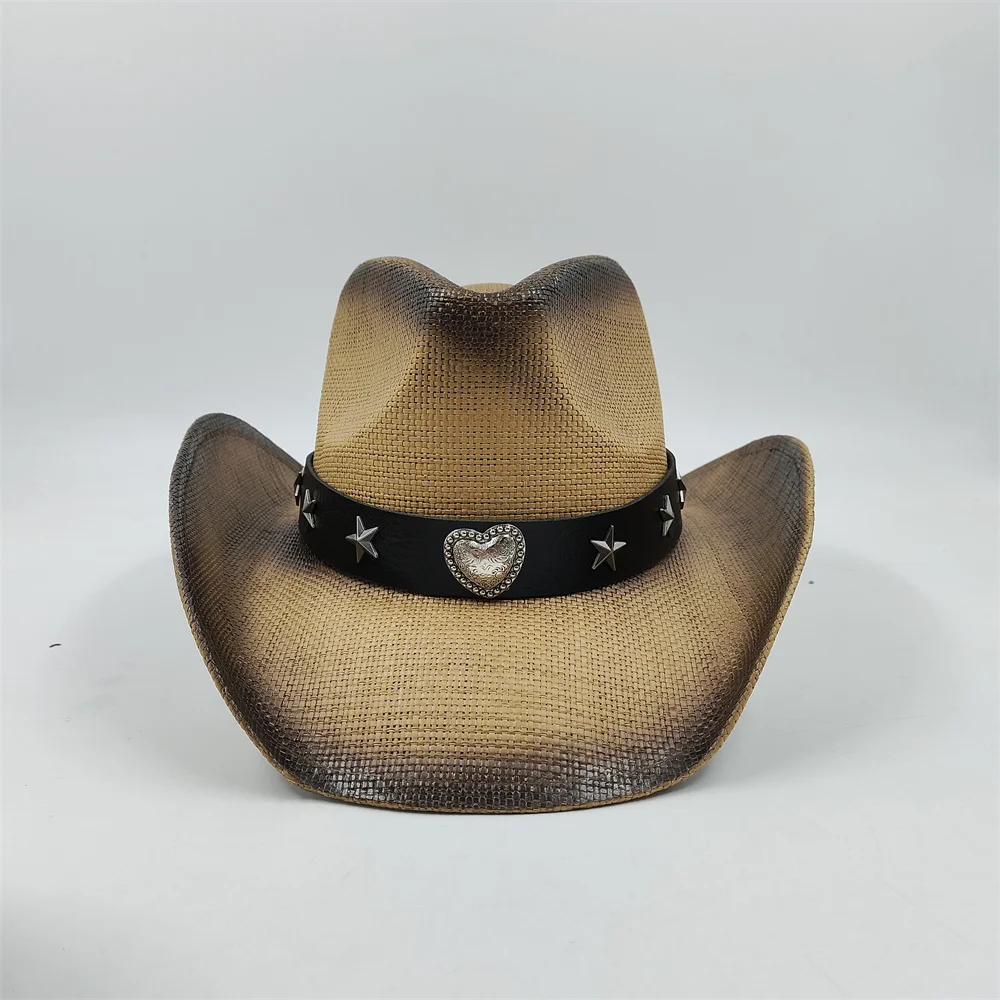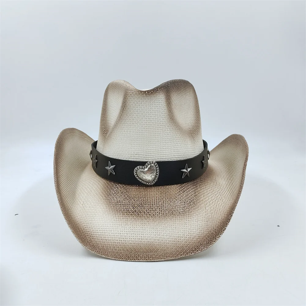 Love Belt Accessories Western Cowboy Straw Hat Fashionable Men and Women Summer Sunshade Straw Hat Cowboy Hat Beach Hat 2024 New