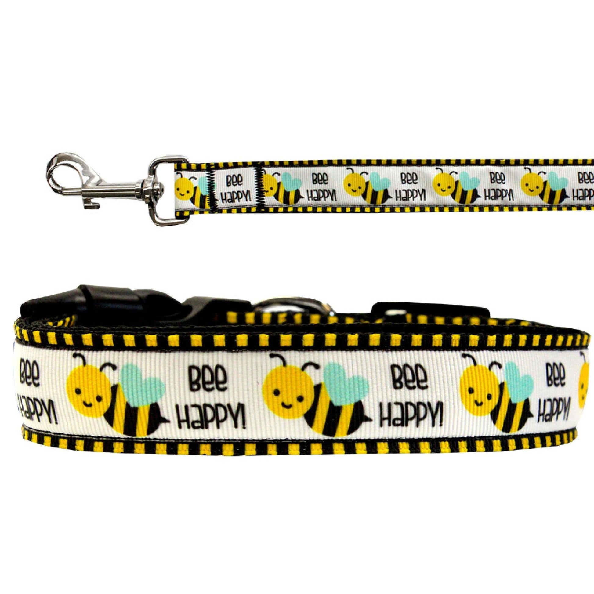 Pet Dog & Cat Nylon Collar or Leash, "Bee Happy"