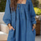 Tied Square Neck Long Sleeve Denim Dress with Pockets